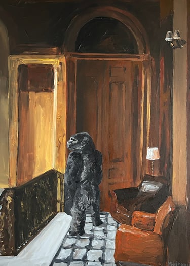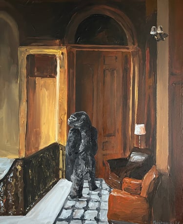 Over the years, Martin has been granted rare access to some of the most magnificent country estates in Britain and beyond - hidden gems of cultural and historical importance. These interiors, rich in period detail and filled with museum-quality furnishings, often served as more than just visual inspiration. They were inhabited by individuals whose sophisticated taste and genteel charm frequently masked layers of complexity and mystery. These encounters sparked a deeper artistic exploration, as Martin began to weave psychological nuance and narrative intrigue into his depictions of space—turning rooms into quiet stages where stories wait to unfold.