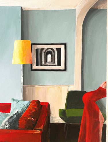"The Room Where Nothing Happened" 2025. Acrylic on canvas. 42cm x 60cm.